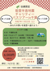 【会員限定】能登半島地震チャリティーバスツアーin千葉の募集開始!!
